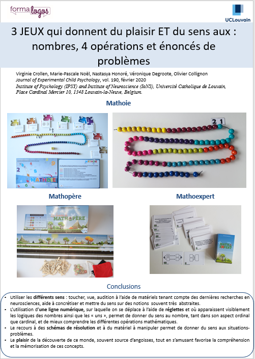 Formation, donnée par Véronique Degroote, logopède et orthophoniste, experte en cognition mathématique et créatrice de 5 jeux alliant SENS et PLAISIR.